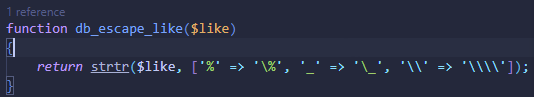 上述代码实现了转义用户可能输入的特殊字符“%”“_”和“\”。其中,“\”在 PHP 单引号字符串中 书写时,为了避免将右边的单引号转义,需要在“\”前面加一个“\”,而实际上只保存了一个“\”。
