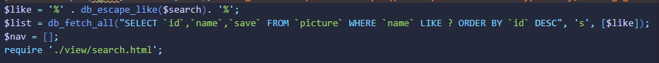 利用 SQL 语句中的 LIKE 操作符进行搜索即可。需要注意的是,由于 LIKE 条件可以用“%”“_”进行模糊搜索,为了避免用户输入的内容和这些字符冲突,应该将这些字符进行转义。在 common\db.php 中编写 db_escape_like()函数,具体代码如下。