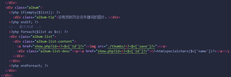 在album.php中写具体实现: