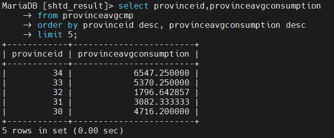 ORDER BY provinceid DESC, provinceavgconsumption DESC