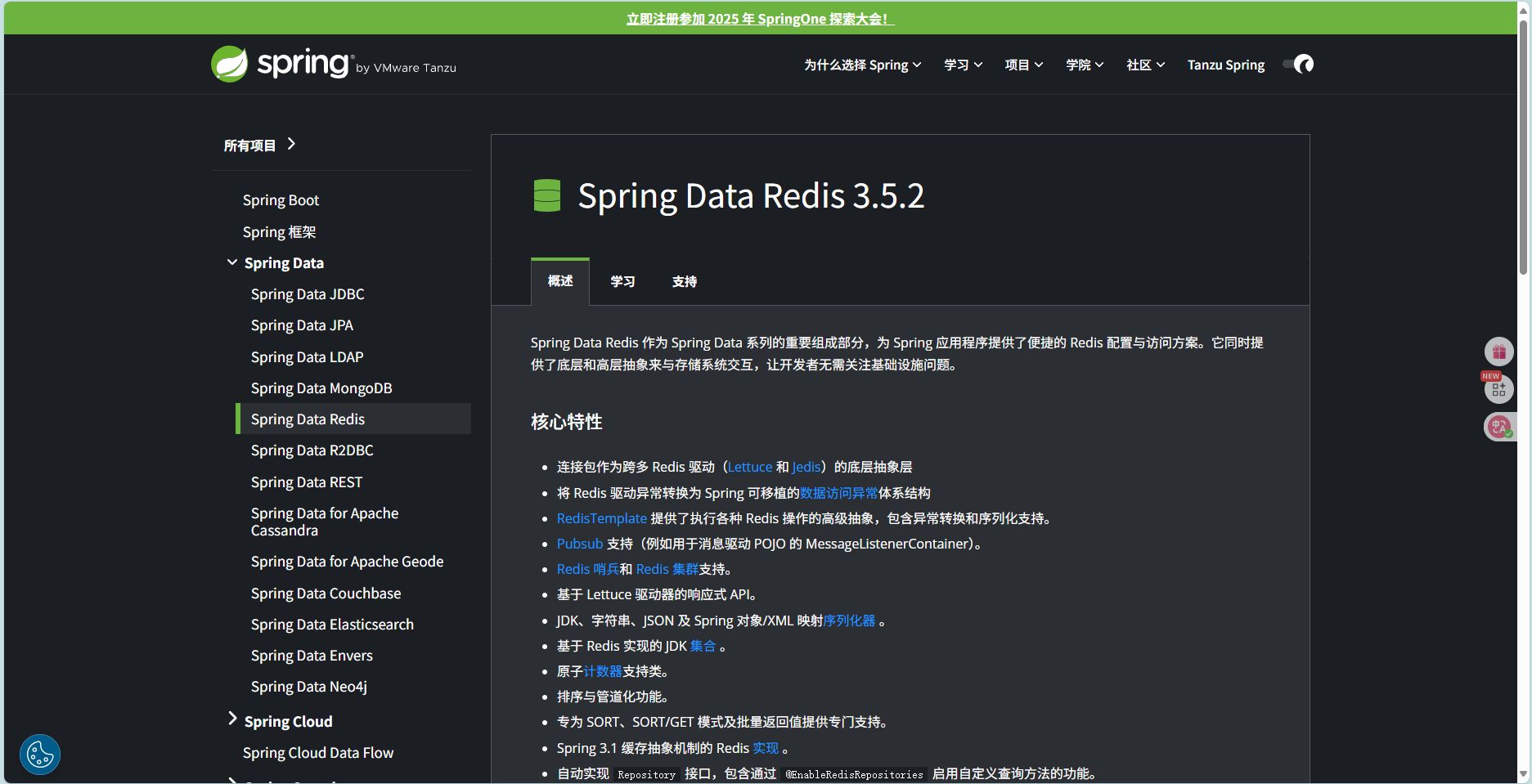 网址:https://spring.io/projects/spring-data-redis