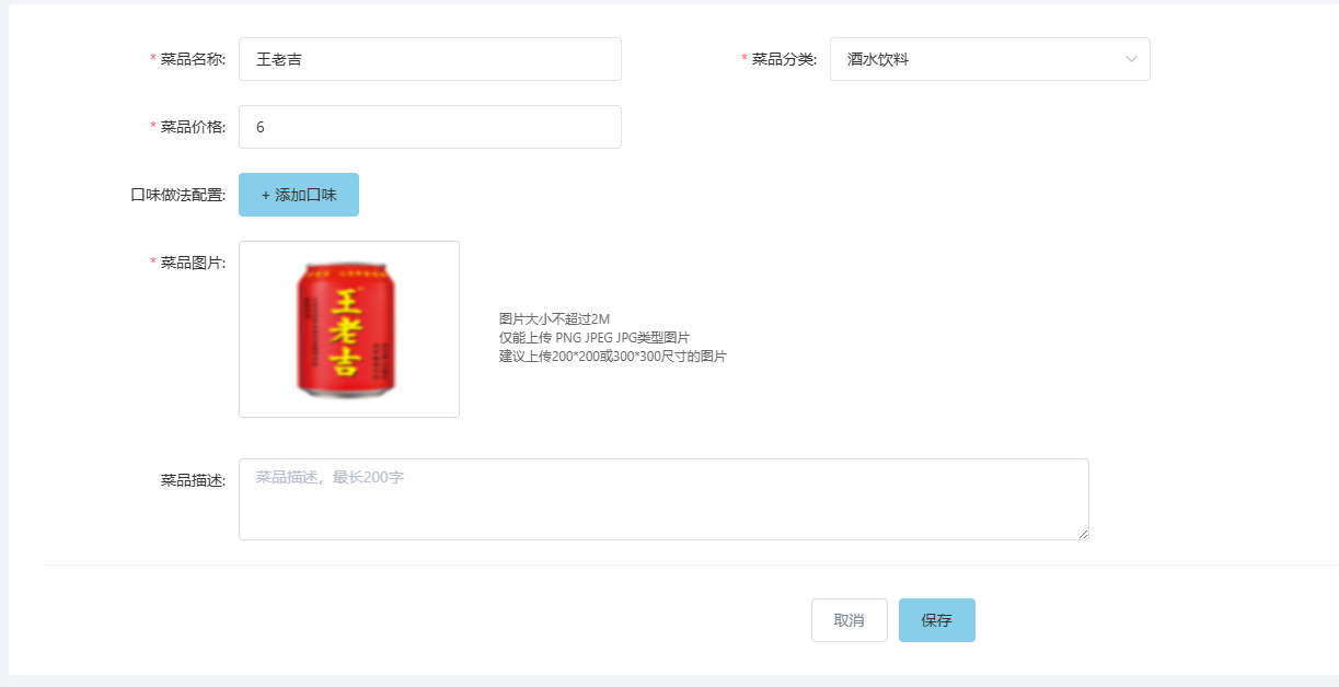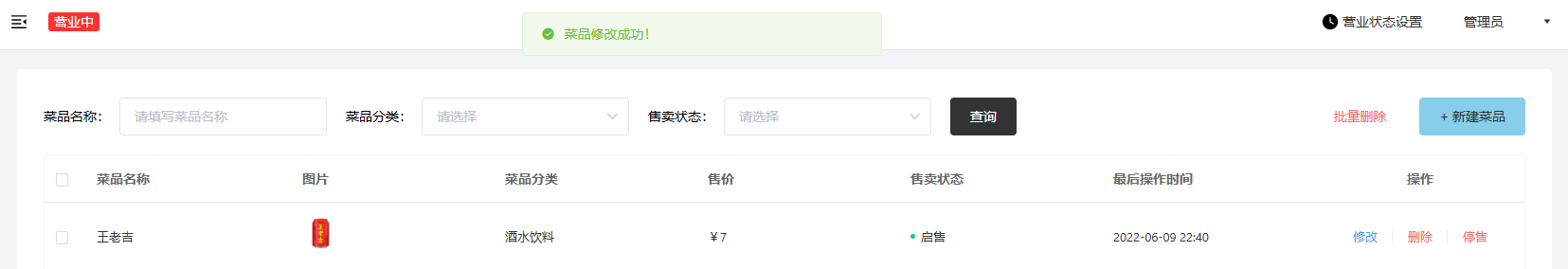 - 修改菜品