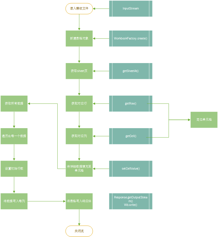 setCellValue();写出并关闭流。