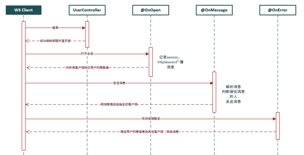 - 前端(小程序/网页)建立连接并处理消息。