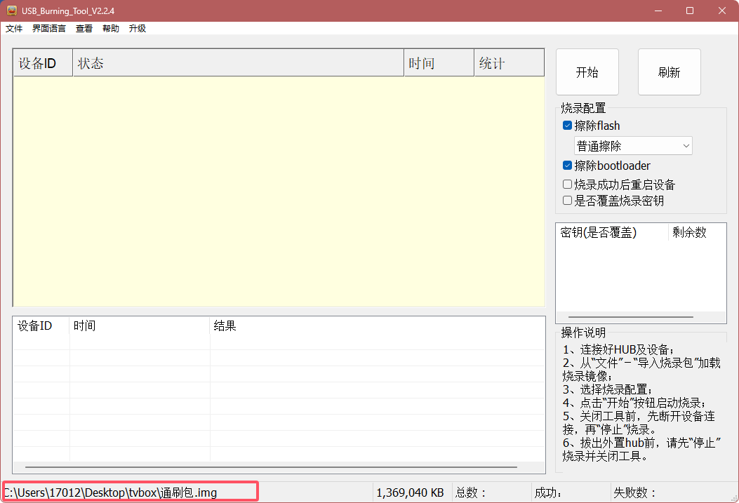 - 安装晶晨烧录工具并确认驱动正常。
