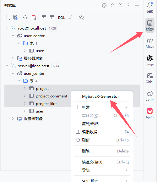2.1 使用 MyBatisX 插件 自动生成相关代码(domain、mapper、mapper.xml、service、serviceImpl)