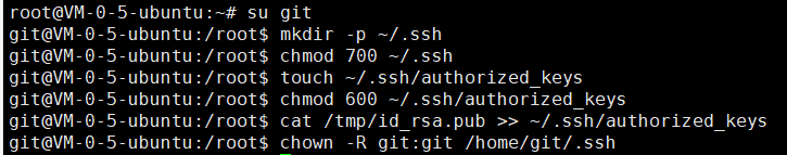 3.3 在服务器上把公钥追加进去(用 git 用户)