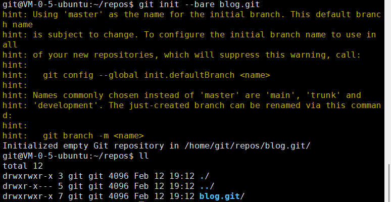进入目录后git init --bare blog.git