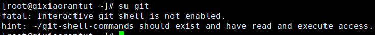 使用su git命令就会出现下面提示,git用户就无法登录到shell,这样就OK了。